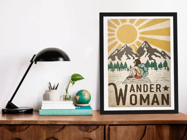 Camping Wander Woman Poster Framed Matte Canvas