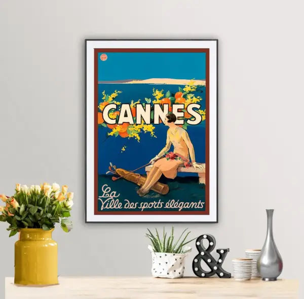 Cannes La Ville Des Sports Elegants Vintage Travel Poster Poster Paper Sticker Or Canvas Print Gift Idea Christmas Gift