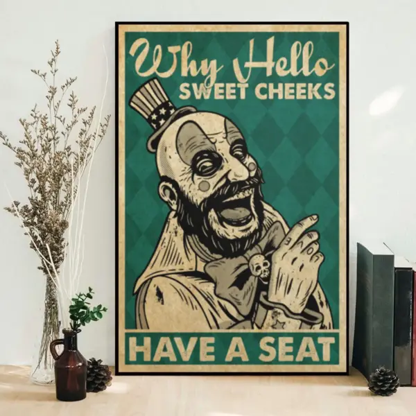 Funny Bathroom Sign - Captain Spaulding "Why Hello Sweet Cheeks" Poster