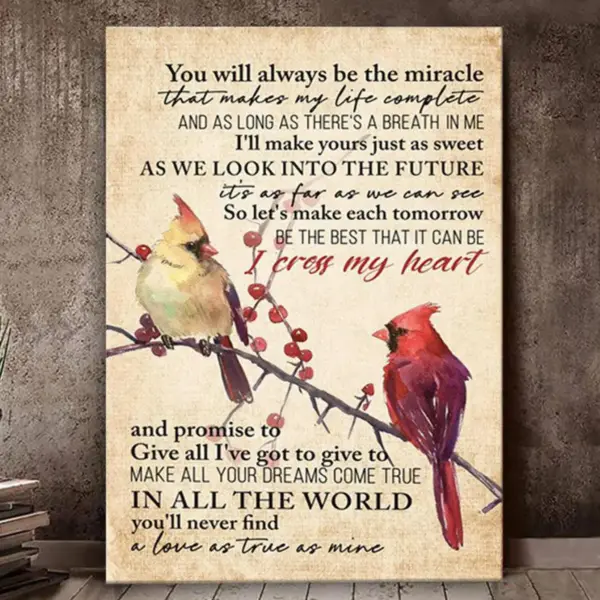 Cardinal Bird Memorial Poster You Will Always Be The Miracle That Makes My Life Complete In Loving Memory Wall Art Decor Memorial Gift