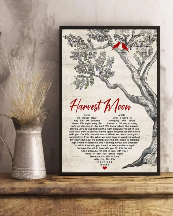 Cardinal Harvest Moon Lyrics Poster Neil Young Lover Music Lover Vertical Poster No Framed