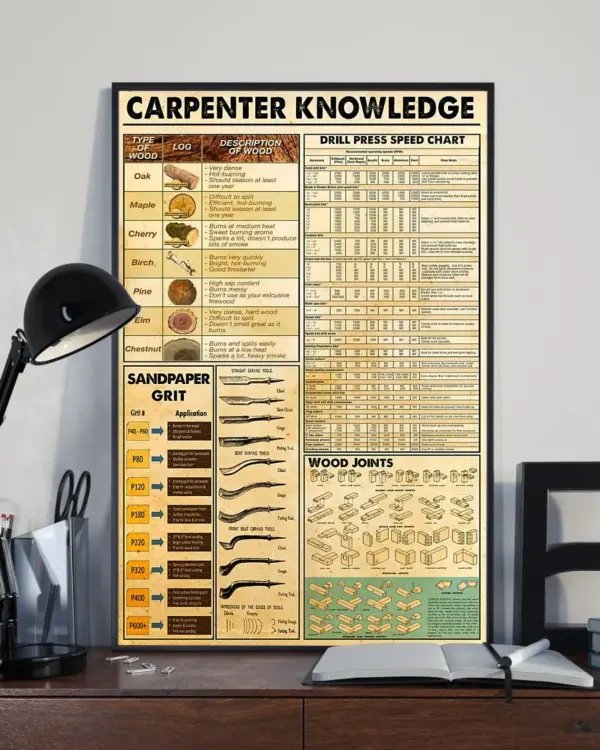 Carpenter Knowledge Type Of Wood Drill Press Speed Chart Poster