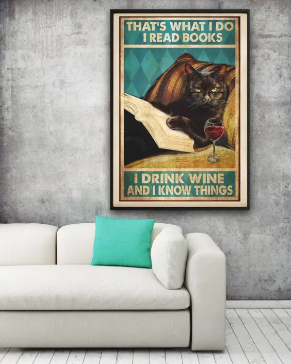 Cat And Books Canvas Wall Art Thats What I Do Read Books Drink Wine And Know Things Poster Home Decor Black Cat Wall Love Reading Print