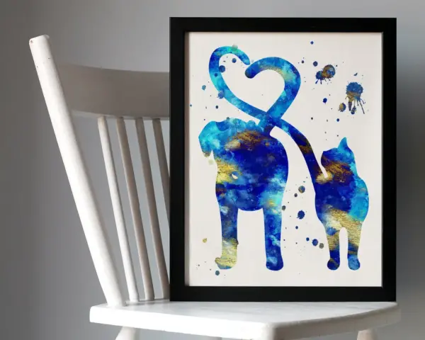 Cat And Dog Print Watercolor Art Printable Pet Poster Pet Painting Veterinarian Gift Nursery Decor Blue Gold
