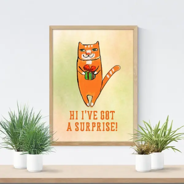 Cat And Gift Ginger Cat Art Print Happy Cat Print Print Cat Lover Gift House Warming Gift Orange Cat Postcard