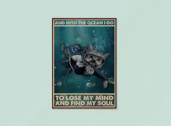 Cat And Into The Ocean I Go To Lose My Mind And Find My Soul Poster