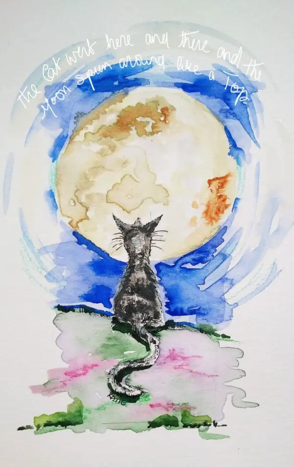 Cat And Moon Print Gift For Cat Lover Direct From The Artist