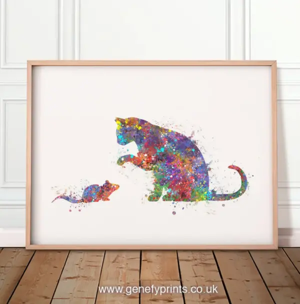 Cat And Mouse Watercolour Print Cat And Mouse Print Cat And Mouse Poster Cat And Mouse Portrait Gift For Cat Lover