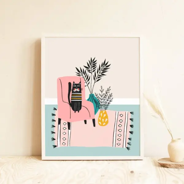 Cat And Plants Black Cat Lover Gifts Cat Lovin Mama Gift Lucky Cat Cat Poster Miniature Black Cat Black Cat Painting