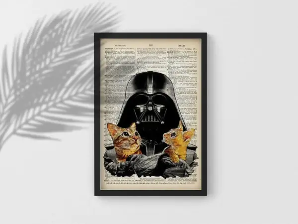 Funny black cat and star wars themed poster print. Perfect vintage artwork gift for cat lovers. Home decor, kitty print.