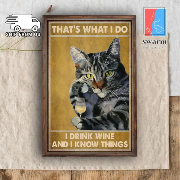 Cat And Wine Lovers Poster That S What I Do I Drink Wine And Know Things Poster Home Living Decor Poster