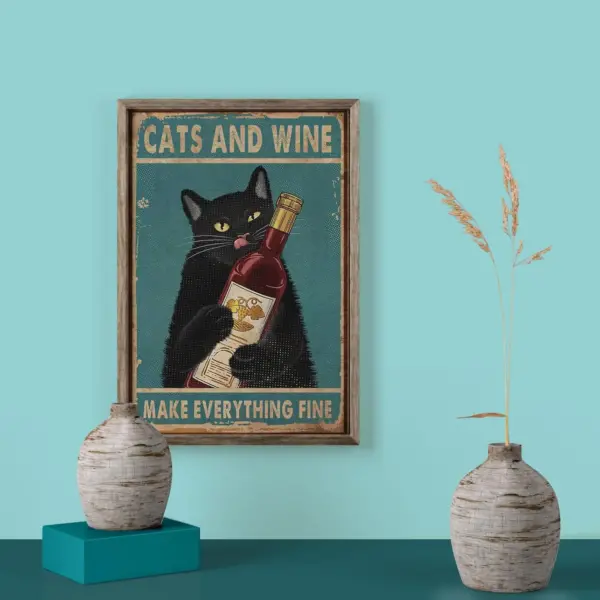 Cat And Wine Make Everything Fine Poster Black Cat Print Cat Print Cat Lover Gift Black Cat Art Cat Art Cat Wall Art Cat Art Print