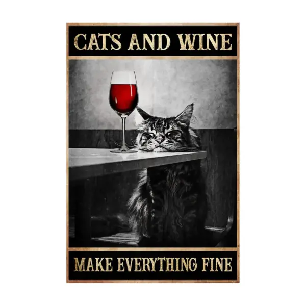 Cat And Wine Poster Cat And Wine Make Everything Fine Poster Cat Poster Wine Poter Wine Lover Gift Wine Glass Decor Cat Lover