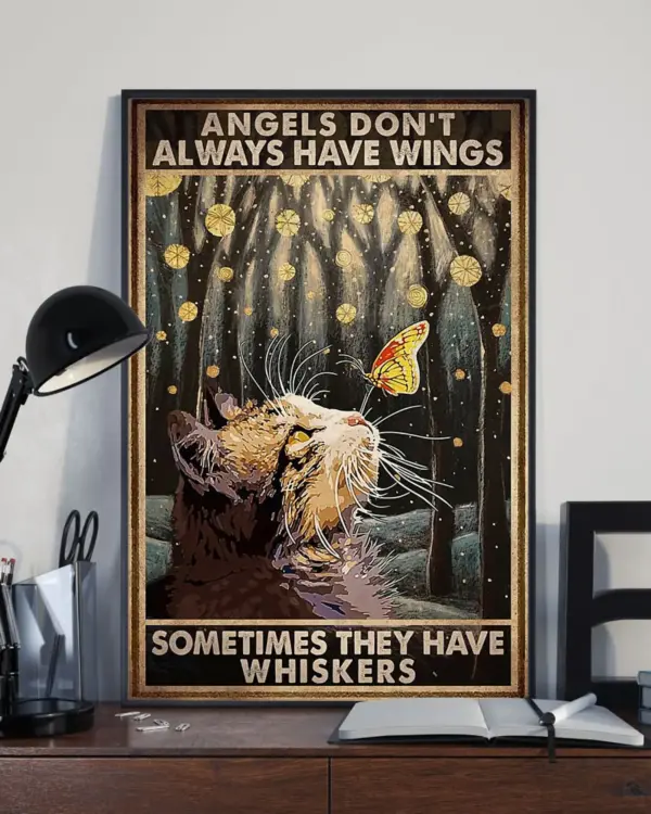 Cat Angels Don T Always Have Wings Poster Wall Poster Retro Style Funny Kitty Poster