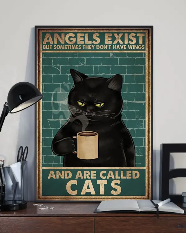 Cat Angles Exist Poster Wall Poster Retro Style Funny Kitty Poster