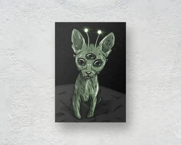Alien Kitty Cat Poster - Gothic Sphynx Kitten Art Print