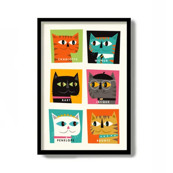 Cat Art Print Funny Pet Gift Cat Lover Gift Orange Cat Tabby Cat Tiger Cat Black Cat Print Mid Century Modern Art Cat Decor Cat Poster