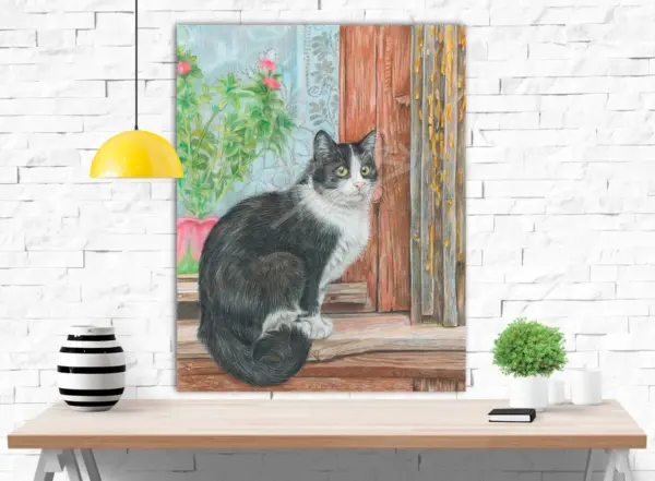 Cat Art Print Happy Day Black And White Tuxedo Cat On A Windowsill Artist Signed Fine Art Print Great Friendship Gift