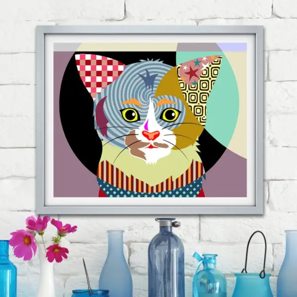 Cat Art Print Kitten Decor Pet Portrait Poster Animal Lover Gift