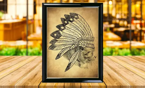 Cat Art Print Kitty Poster Kitten Decor Steampunk Illustration Native American Cat Lover Gift Old Paper Antique Decoration