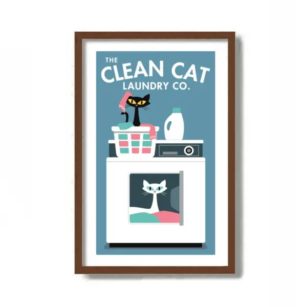 Cat Art Print Laundry Room Decor Mid Century Modern Wall Art Laundry Sign Black Cat Gift Idea White Cat Cat Lover Gift Laundry Basket