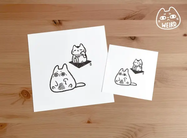 Cat Art Print The Lucky Cats Art Print Square Art Print Simple Illustration Cat Wall Art 8 Art Print Theweirdcatco