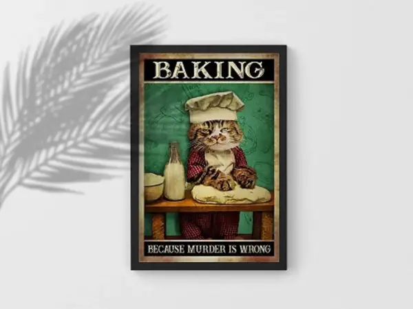 Cat Baking Because Murder Is Wrong Poster Cat Baking Bakery Poster Baking Art Print Cat Lover Gift Signs For Home