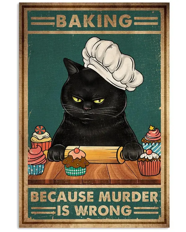 Cat Baking Because Murder Is Wrong Poster Wall Poster Retro Style Funny Kitty Poster