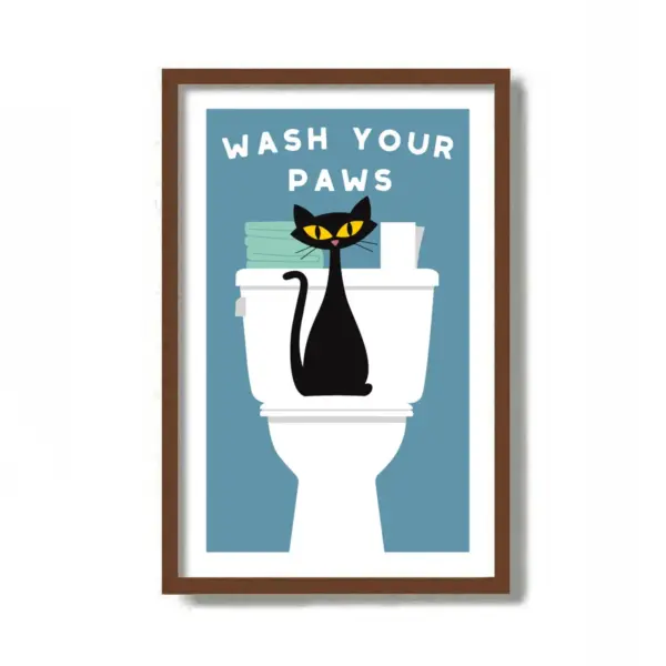 Cat Bathroom Decor Wash Your Hands Black Cat Art Print Laundry Room Decor Mid Century Modern Wall Art Bath Sign Cat Lover Gift