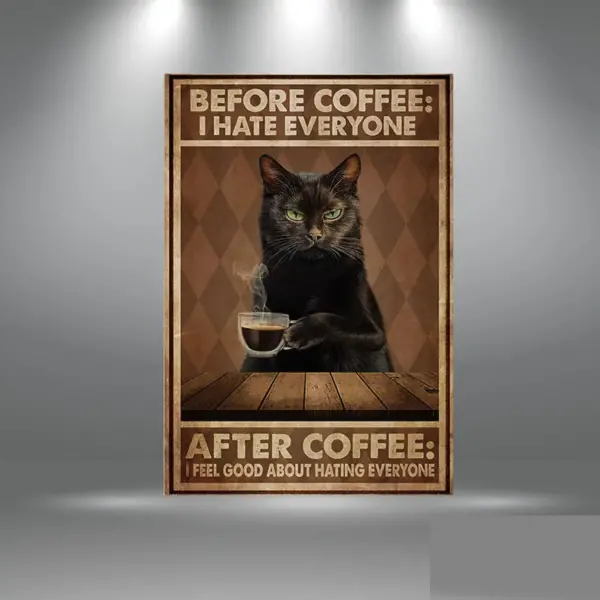 Cat Before Coffee I Hate Everyone After Coff I Feel Good About Hating Everyone Poster