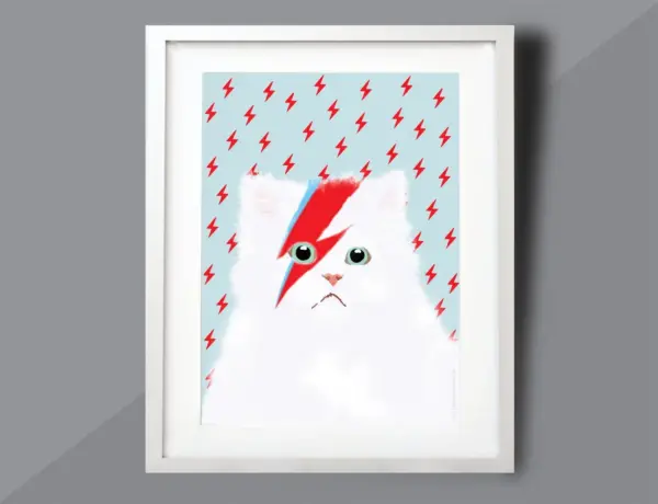 Cat Boho Art Print Lightning Bolt Illustration Misty Blue Wall Art For Teenager Bowie Cat Gift For Men Cheer Up Presents For Boyfriend