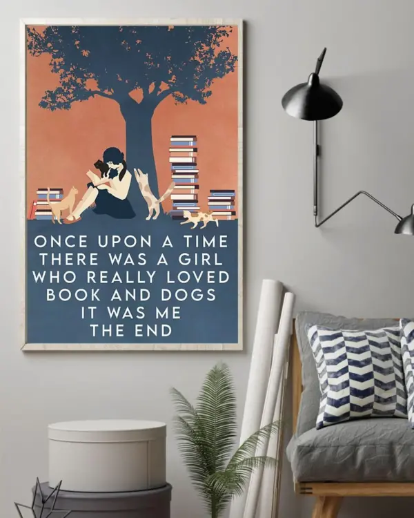 Cat Book And Dogs Poster Wall Poster Retro Style Funny Kitty Poster
