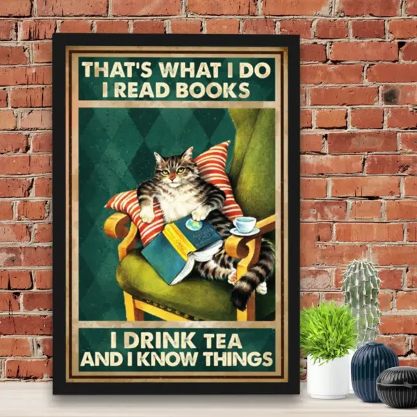 Cat Books Tea What I Do No Frame Poster I Read Books I Drink Tea And I Know Things Cat Book Lover Gift Poster