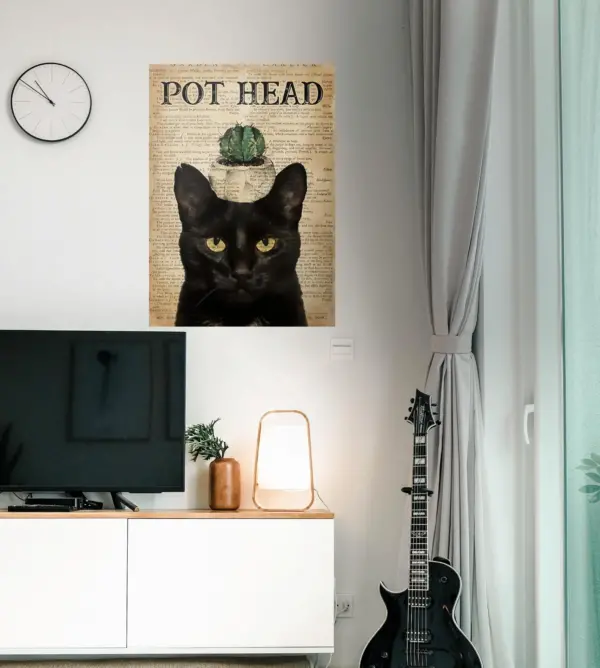 Cat Cactus Pot Head Poster Framed Matte Canvas