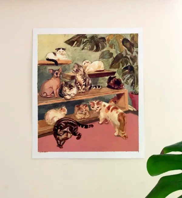 Cat Cafe Posin Cats Poster Cats Print Cat Art Watercolour Gouache Cats Gift Catoftheday Cat Cat Cafe Kawaii Poster Calico Cat Cute