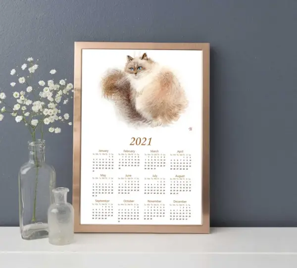 Cat Calendar Printable 2021 Wall Calendar Cat Lover Gift Ragdoll Cat Wall Poster Watercolor Calendar Christmas Gift Housewarming Cat 2021