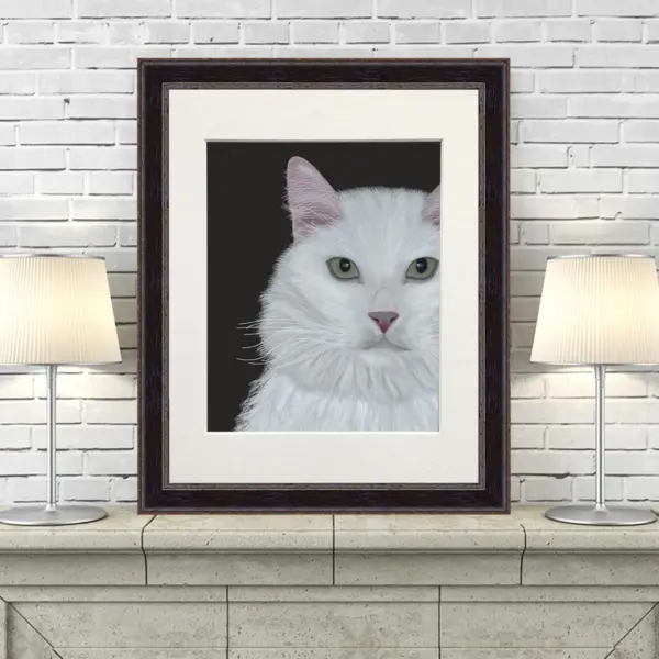 Cat Canvas Print White Cat Wall Art White Cat Art Print On Dark Grey Cat Wall Decor Cat Home Decor Cat Poster Black And White Decor