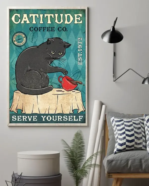Cat Catitude Poster Wall Poster Retro Style Funny Kitty Poster