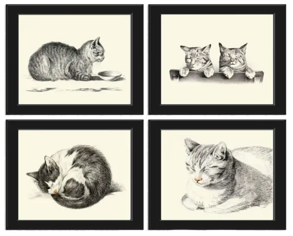 Cat Cats Cute Animals Print Set Of 4 Beautiful Wall Art Kitty Kittens Pet Pets Lover Gift Horizontal Orientation Home Room Decor To Frame Jb