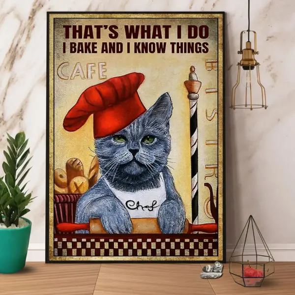 Cat Chef That S What I Do I Bake And I Know Things Poster Cat Poster Chef Poster Cat Lover Poster Baking Canvas Best Gifts Wall Decor