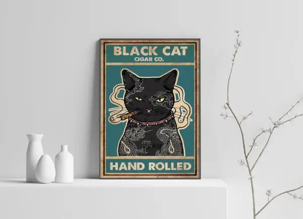 Cat Cigar Co Hand Rolled Poster Smoke Catnip Poster Black Cat Poster Cat Lover Gift Cat Decor Cat Poster Retro Style Cat Retro Funny Cat