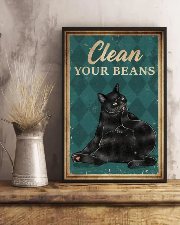 Cat Clean Your Beans Vertical Poster Cat Lover Gift Black Cat Poster Hanging Poster Cat Poster Print Wall Art Best Gift Wall Decoration