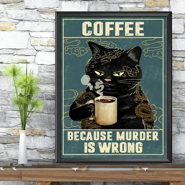 Cat Coffee Because Murder Is Wrong Poster Black Cat Poster Cat Vintage Poster Cat Lover Gift