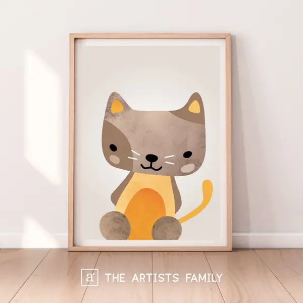 Cat Downloadable Prints Illustration Nursery Wall Art Decor Modern Kitten Cute Simple Animals Printable Baby Girls Boys Kids Room Peekaboo