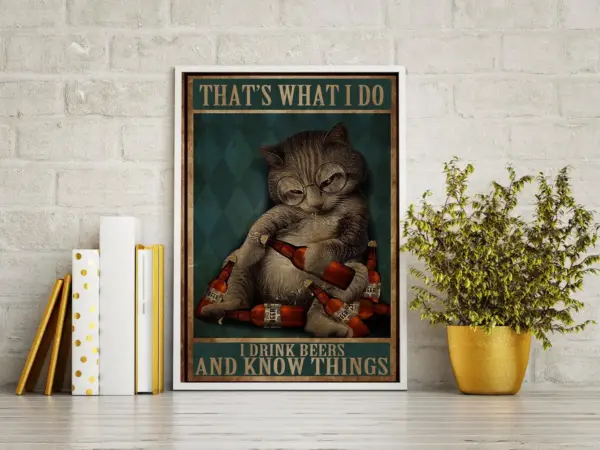 Cat Drink Beer Vertical Poster Cat Drink Beer Vertical Art Wall Cat Drink Beer Vertical Art Print