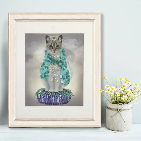 Cat Gifts For Women Grey Cat With Bells Full Cat Art Illustration Kitty Cat Cat Wall Art Cat Lover Gift Cat Gifts For Her Cat Poster