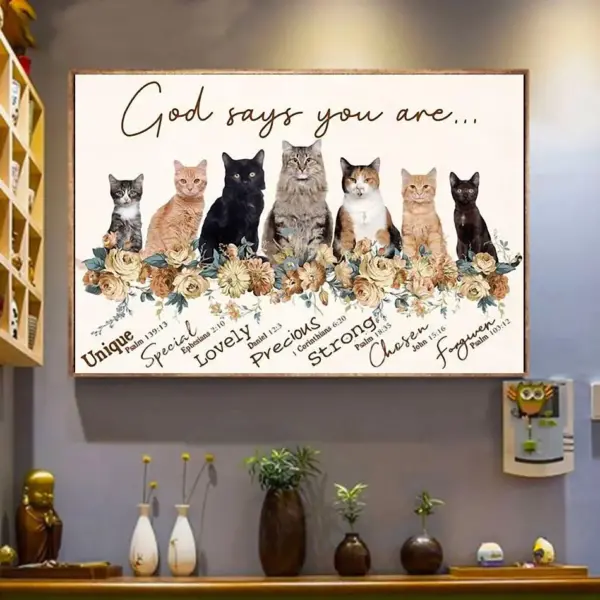 Cat God Says You Are Unique Special Lovely Precious Poster Canvas