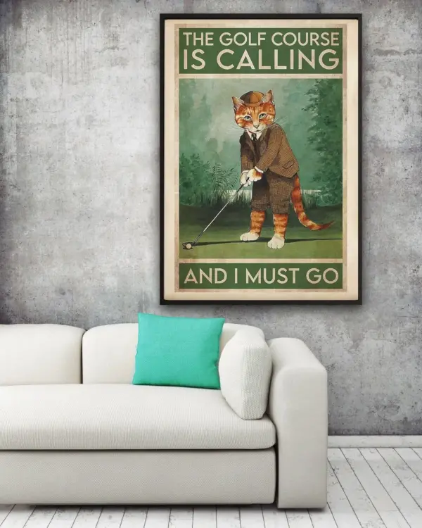 Cat Golf The Golf Course Is Calling And I Must Go Poster Home Living Decor Poster Golf Pro Shop Decor Lpga Art Iconic Lady Golfer Art