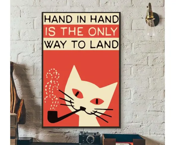 Cat Hand In Hand Is The Only Way To Land Poster No Frame Funny Cat Art Print Cat Lover Poster The Cure Love Cats Lyrics Wall Decor
