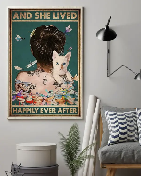 Cat Happily Ever After Poster Wall Poster Retro Style Funny Kitty Poster